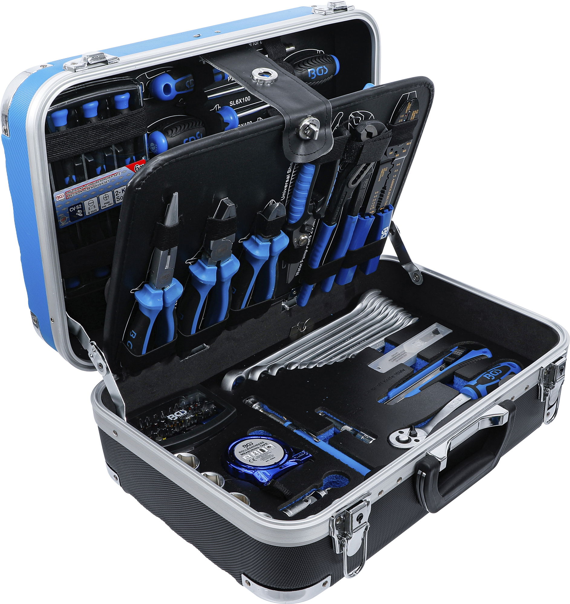 BGS Technic 9-15505 ABS-műanyag szerszámos koffer, általános szerszámokkal felszerelt, 106 részes