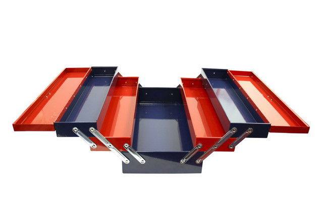 Harmónika kialakítású, profi kivitelű fémláda.